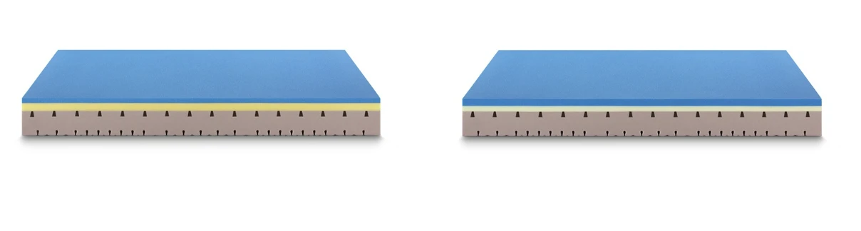 Nella versione Soft, lo strato centrale è invece più sottile e meno denso, rendendo il materasso ancora più accogliente e morbido, grazie anche a uno strato di Memory Gel maggiorato in superficie.
