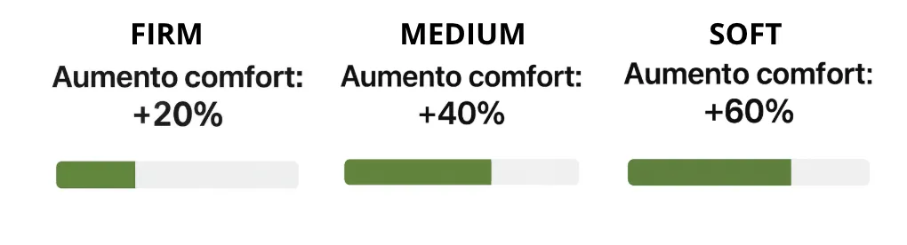 Soft: Ideale per chi desidera dormire su una vera e propria “nuvola”. Aumenta la morbidezza fino al 60%, creando una superficie estremamente avvolgente e confortevole.